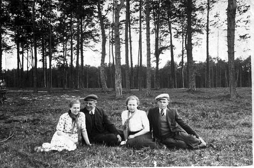 Grzybobranie, Henryka Szeląg, Marian Oszkiel, Marianna Henryka Sabak (1927) córka Władysława i Zofii Wójcik i Jan Oszkiel (1922) syn Wiktora i Marianny Świątek, mąż Marianny Henryki Sabak (śl. w 1948 roku).
