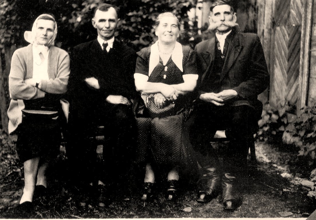 Rok 1959. Aleksandra Sabak (1900) córka Jana i Franciszki Pęśko, Stanisław Kwiatkowski (1888) syn Jana i Marianny Zwierz mąż Aleksandry, Stefania Sabak (1905) i Józef Sabak (1897) rodzeństwo Franciszka Sabak i Anny Domareckiej. | ![]() |