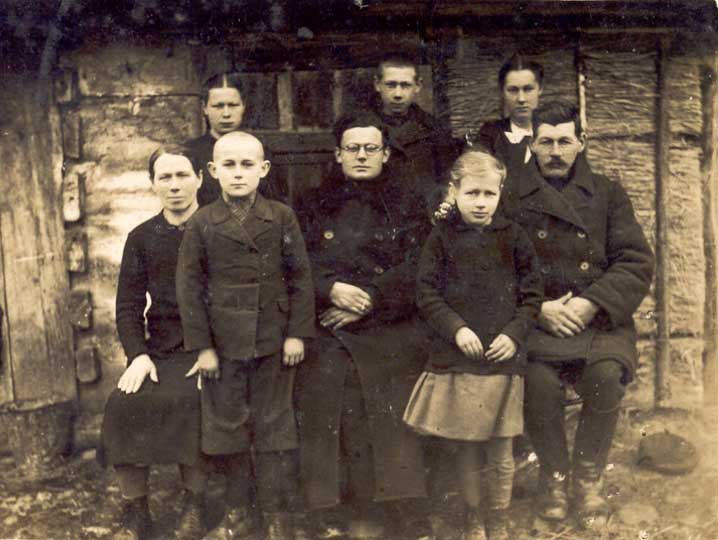 Władysław Sabak (1892) z żoną Weroniką Łuszkiewicz (1895) córką Andrzeja i Zofii Pazura i rodziną: Marianna i Jadwiga (1924) z tyłu, Jan (1928) oraz z przodu Stanisław i Teresa (1932).